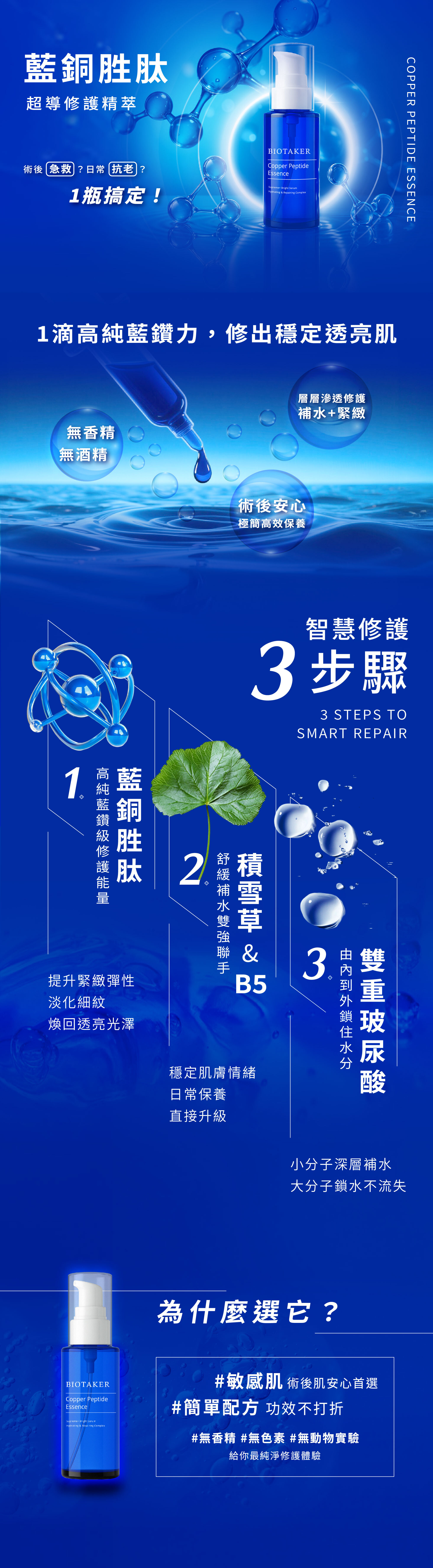 • 高純度藍鑽胜肽+B5,術後急救保養必備選擇!