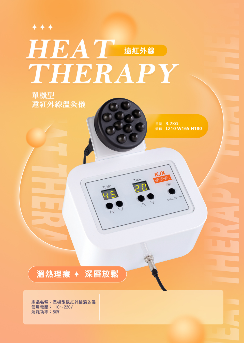 以遠紅外線元素所製成的陶瓷溫灸頭,加熱時會釋放出源源不絕的遠紅外線,能夠溫熱、按摩穴位,幫助身體消除疲勞、恢復活力、活絡循環。