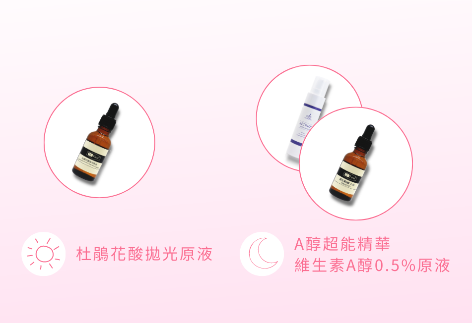 A:杜鵑花酸衍生物主要能改善角質堆積與提亮紅黑暗沉、改善膚色不均,抑制荳荳及出油可以選用繖花醇戰荳原液。