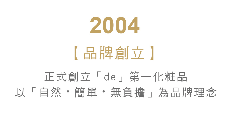 2004年de品牌創立,擁有60年化工原料技術專業,生產均符合化粧品GMP CNS22716規範、通過國際ISO9001認證並取得MIT微笑標章,各式檢驗如SGS、COA、SDS等均自源頭嚴格把關,廠區更以綠建築獲環保節能減碳行動標章彰顯綠色保養之理念,de第一化粧品從源頭的設計、生產、運送到使用包材回收,均致力提供完善服務與良好產品體驗。
