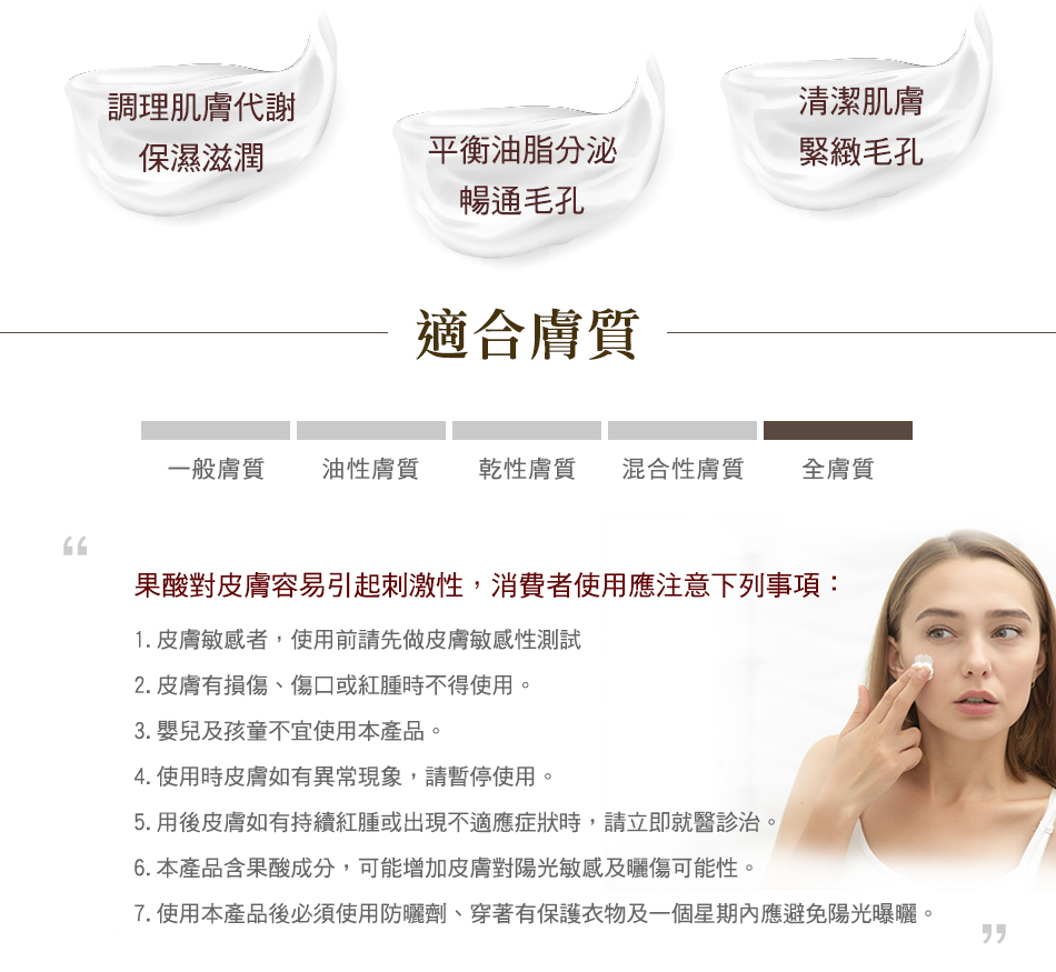 • 平衡油脂質分泌,暢通毛孔、皮膚煥新