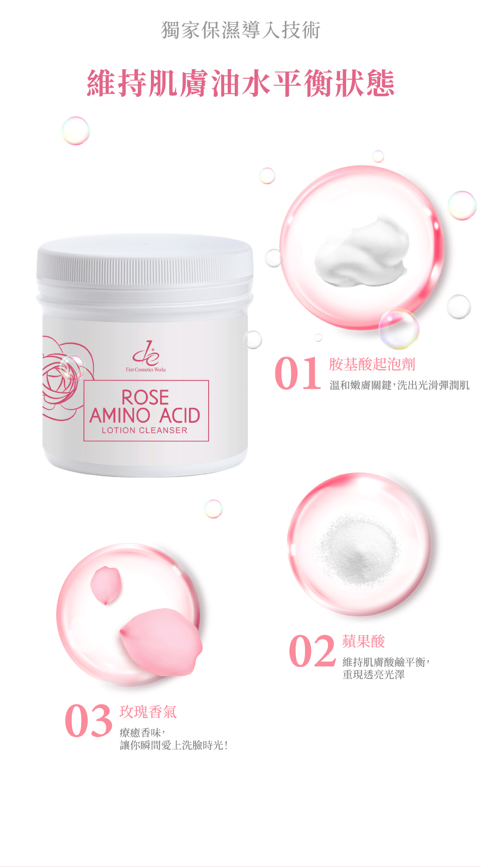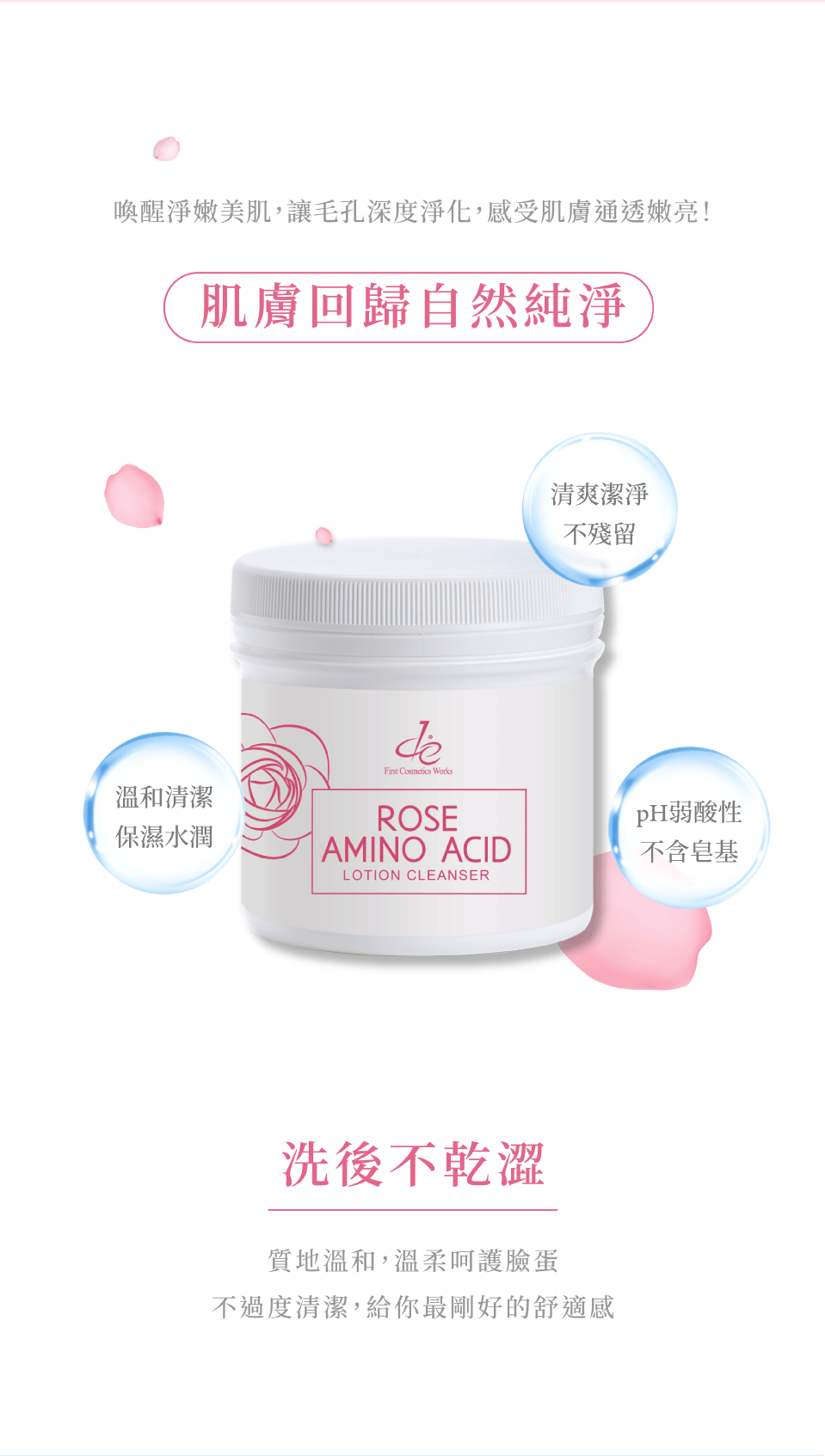 胺基酸成分接近人體肌膚,能溫和清除皮脂髒汙,使肌膚柔軟淨化不緊繃。讓洗臉不單單只是清潔而是保養,給您滿滿的甜蜜浪漫氣息。