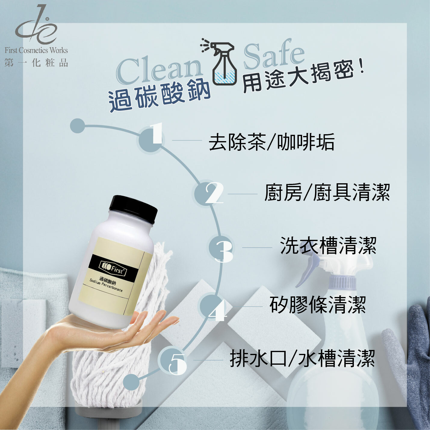 天然去汙清潔粉-「過碳酸鈉」又稱過氧碳酸鈉,俗稱固體雙氧水,是一種氧系漂白劑,日常應用中常被用來添加至洗衣精、洗衣粉中,它無毒無味,跟小蘇打、檸檬酸一樣屬於天然的清潔劑。