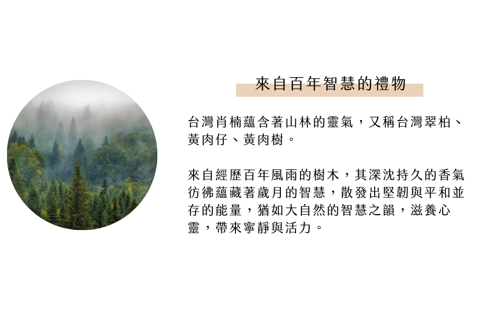 珍貴的肖楠木精油相當不易萃取,需百年以上的樹齡才可得到,