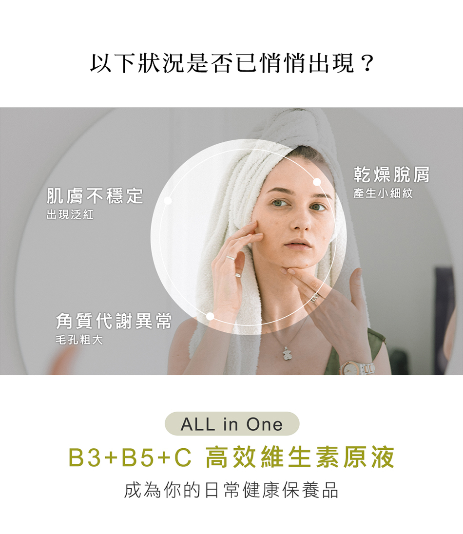 • ALL in One的B+C原液,一瓶日常瞬效快速導入肌膚營養