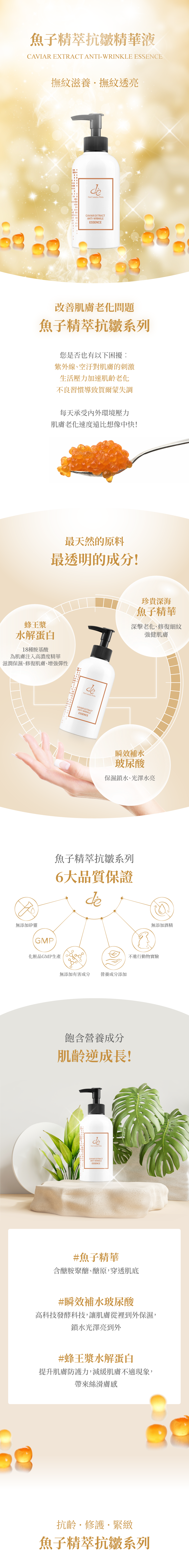 •珍貴魚子精華萃取,全面滋養修護肌膚
